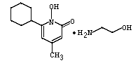 别名:环吡司胺; 环吡酮胺; 环匹罗司乙醇胺; 6-环己基-1-羟基-4-甲基吡啶-2(1H)-酮 2-氨基乙醇,环已吡酮羟乙胺酮,环匹罗司乙醇胺,6-Cyclohexyl-1-hydroxy-4-methylpyridin-2(1H)-one 2-aminoethanol (1:1),巴特芬(Batrafen),Brumixal, Ciclopirox Olamine, Cicloche, Cyclopyrox 等。