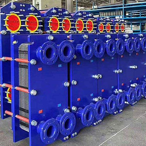 板式换热器是近几十年来得到发展和广泛应用的一种新型高效、紧凑的热交换器,它由一系列互相平行、具有波纹表面的薄金属板相叠然后用夹板、螺栓紧固装配的一种换热器。冷热两种工作流体相间在每两块相邻板片组成的狭小而曲折的通道中流过,并通过间隔冷热流体的板片进行冷热交换。